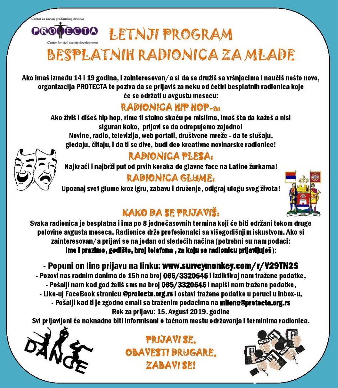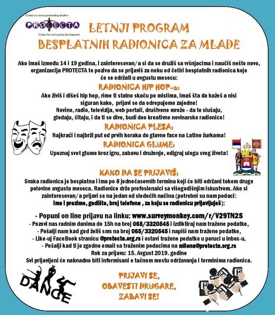 PROTECTA te poziva da se prijaviš za neku od četiri besplatnih radionica koje će se održati u avgustu mesecu: