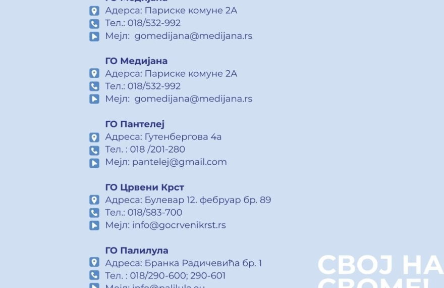 Građani Srbije od 8. decembra mogu da započnu postupak upisa prava svojine na objektima u kojima žive ili rade. Postupak će trajati 60 dana, uz mogućnost produženja, a prijava se podnosi elektronski preko platforme www.svojnasvome.gov.rs. Za Nišlije kojima je potrebna pomoć pri prijavi, mogu da je potraže na šalterima Gradske uprave, gradskih opština i pošti, […]