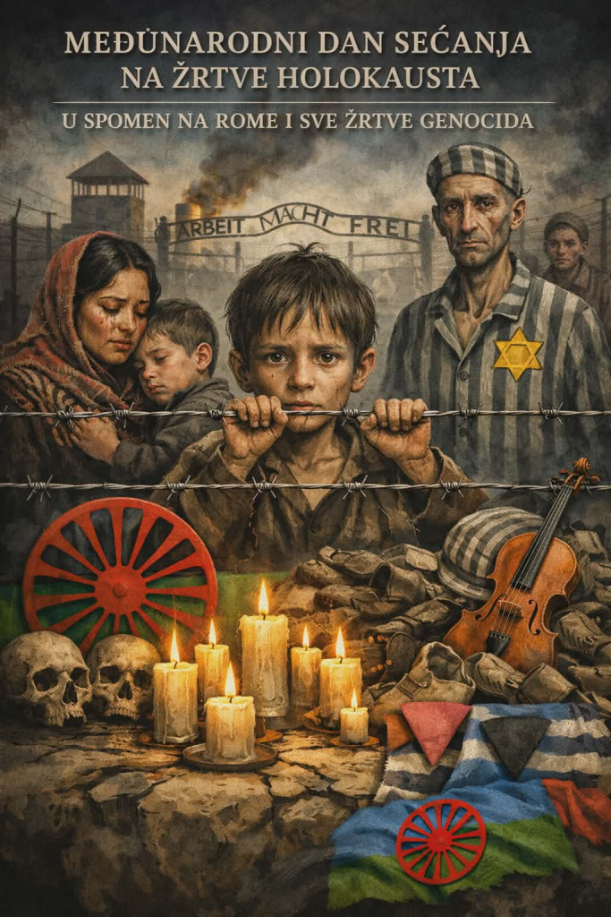 Parajmos koji i dalje traje Međunarodni dan sećanja na žrtve Holokausta nije samo datum u kalendaru. To je moralna obaveza čovečanstva da pamti, da uči i da nikada ne ćuti. Za romski narod, ovaj dan nosi dodatnu, duboku i bolnu težinu, jer je naš genocid decenijama bio prećutkivan, relativizovan ili potpuno izbrisan iz kolektivnog sećanja Evrope. Tokom Drugog svetskog rata, Romi su sistematski proganjani, deportovani i ubijani širom nacističke Evrope. Taj genocid poznat je pod imenima Parajmos (Proždiranje) i Samudaripen (Masovno ubijanje). Stotine hiljada Roma, muškaraca, žena i dece, ubijene su u koncentracionim logorima, na stratištima, u masovnim grobnicama, bez imena i bez obeležja.