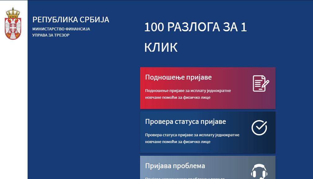 Prijava za 100 evra preko sajta Uprave trezora od danas