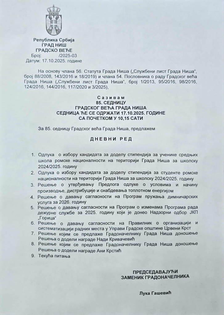 Na sednici gradskog veća koja je održana 17.10.2025 godine usvojena je odluka o stipendiranju 48 srednjoškolaca i 5 studenata iz romske zajednice u Nišu za školsku 2024/25. Sredstva su obezbeđena za 50 srednjoškolaca i 10 studenata.