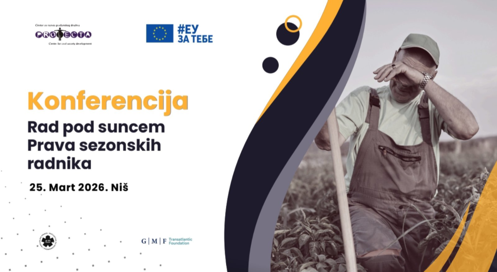 U prostorijama Regionalne privredne komore Niš održana je konferencija „Rad pod suncem: prava i iskustva sezonskih radnika“, na kojoj su predstavljeni rezultati istraživanja PROTECTA-e o položaju i uslovima rada sezonskih radnika, kao i vodič kroz prava sezonskih radnika.
